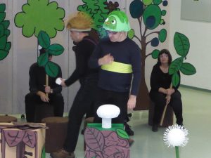 V četrtek, 15.2. 2018 smo se uporabniki gledališke skupine VDC Črnomelj predstavili z igrico »Ježki gredo v svet« , učencem OŠ Metlika. Program pa sta popestrila tudi Erika in Peter s pesmijo » Ne reci nikdar« in » Kar je moje je tvoje«.